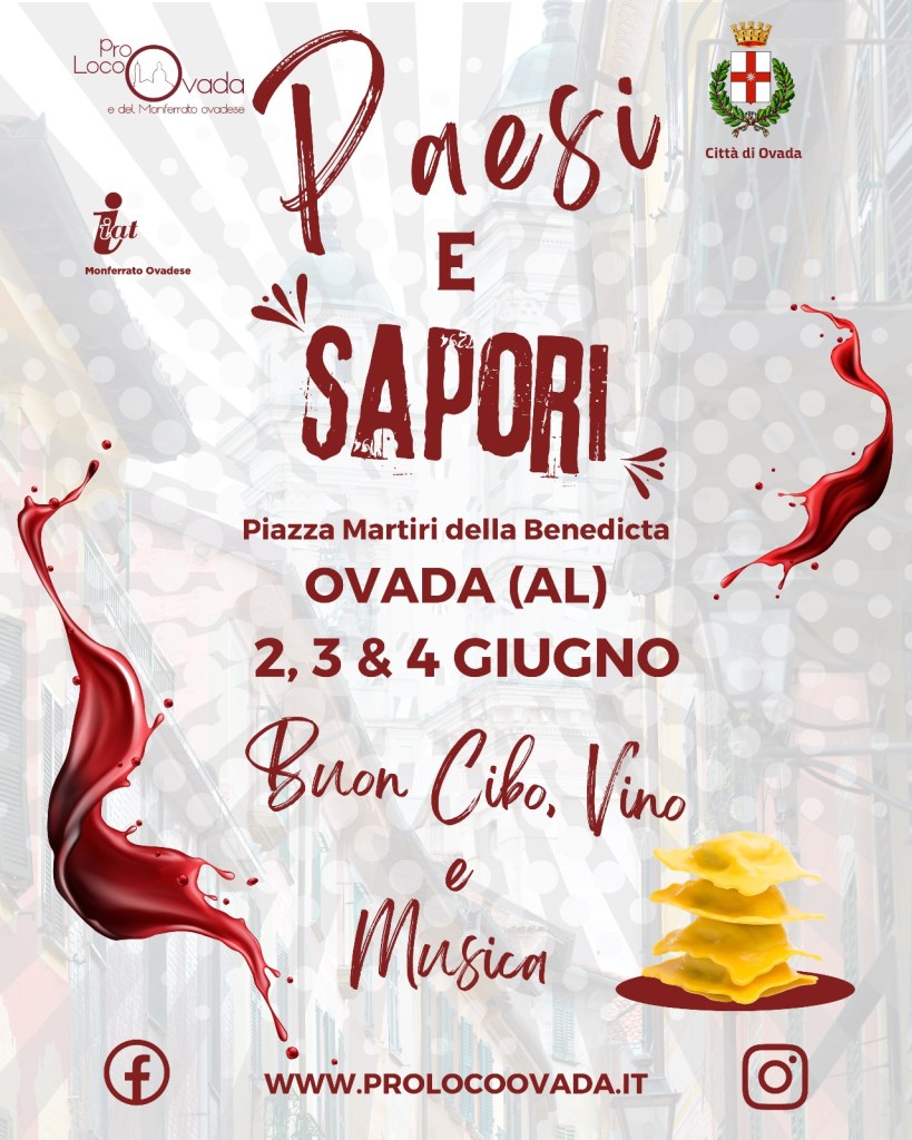 L’appuntamento a Ovada, presso piazza Martiri della Benedicta, sarà Venerdì 2 Sabato 3 e Domenica 4 Giugno.
